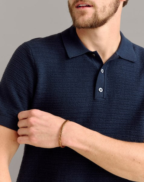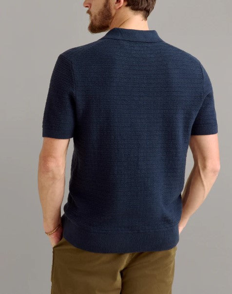 This classic sweater polo echoes hints of vintage golf style and etiquette out on the links. Billy loves to golf, and created this riff on a pique sweater polo in three colorways to bring that style to the collection with details like a roll back English shoulder detail and smoke trochus buttons. It’s definitely a great piece to wear at the country club, and looks great on those breezy spring days before the weather starts to really heat up.